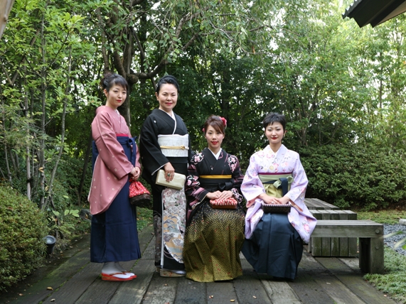 高級京友禅の夫婦鶴や四季折々の花々などをあしらった伝統的な格調有る着物を各守護用意。