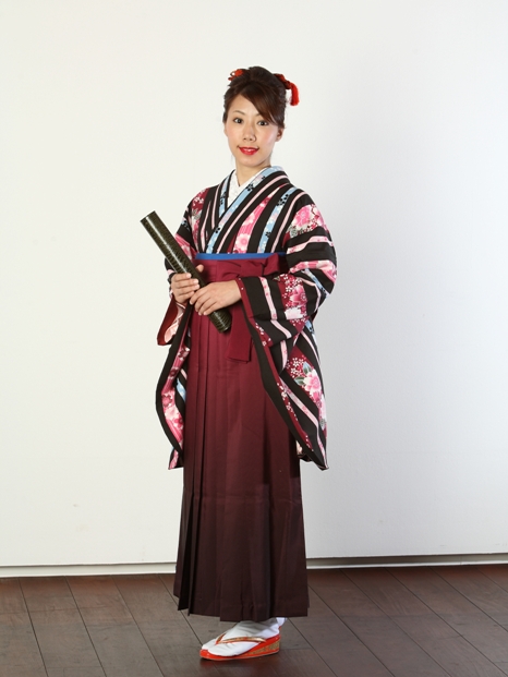袴を着るとキリリとした印象になり、卒業式の学生さんなどは初々しく、若さを表現できます。