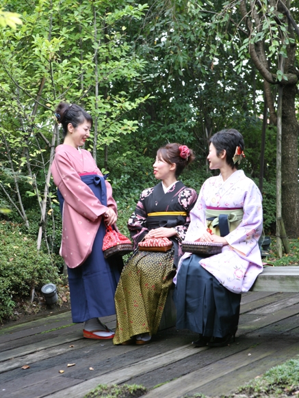 謝恩会などでも、そのまま袴姿でも良いですし、袴を脱いで着物だけになって出席しても、又、趣が異なります。