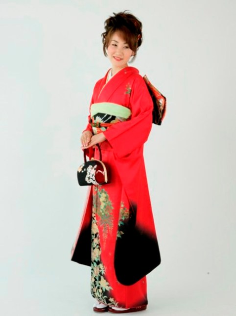 光沢の美しい赤でお顔の色を色白に明るく見せながら、裾のほうが黒に変わる振袖は、すっきりとスタイル良く見える効果も。。。