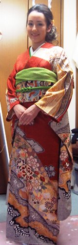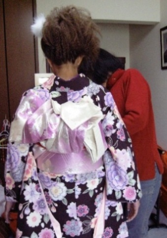 振袖を是非、着たかったとおっしゃる米国の学生さんの着付けをさせていただきました。