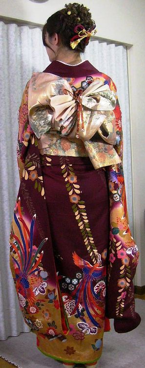 後ろ姿にも前と同じ鳳凰柄が施されているのは高級呉服の証でもあります。